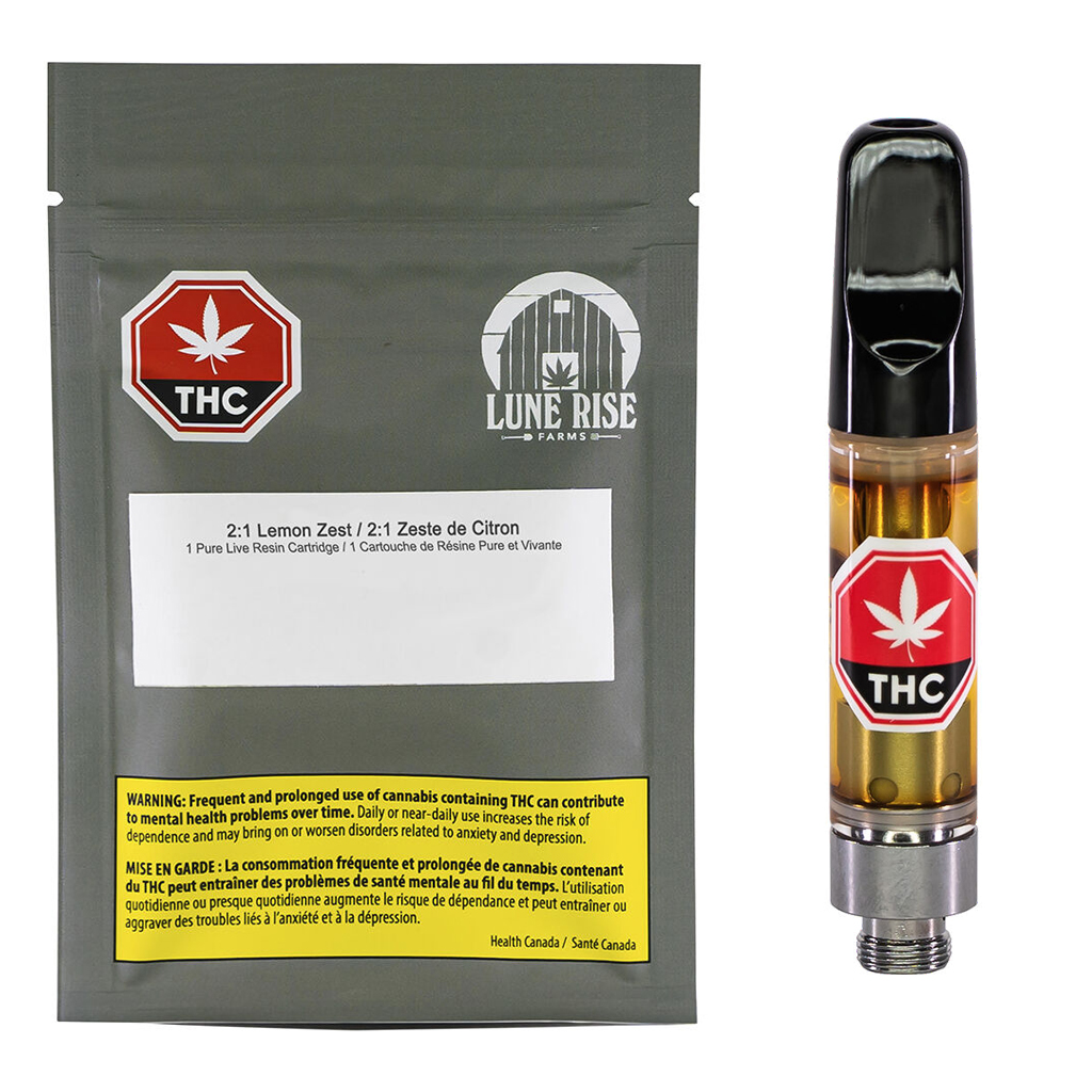 Lune Rise Farms' 2:1 CBD:THC Lemon Zest Live Resin Carts are made with sun grown flower that is fresh-frozen onsite at harvest preserving the strain's unique cannabinoid and terpene profile. Sourced from a single strain cannabinoid, our Lemon Kush cultivar’s terpene profile delivers a smooth and subtle lemon flavour and a sweet citrusy aroma. At Lune Rise Farms, we are committed to bringing the time honoured traditions and practices of regenerative farming to the cultivation of cannabis. We truly believe that natural products are best looked after by the craftspeople of the earth, the farmers. We grow and harvest. We don’t manufacture.