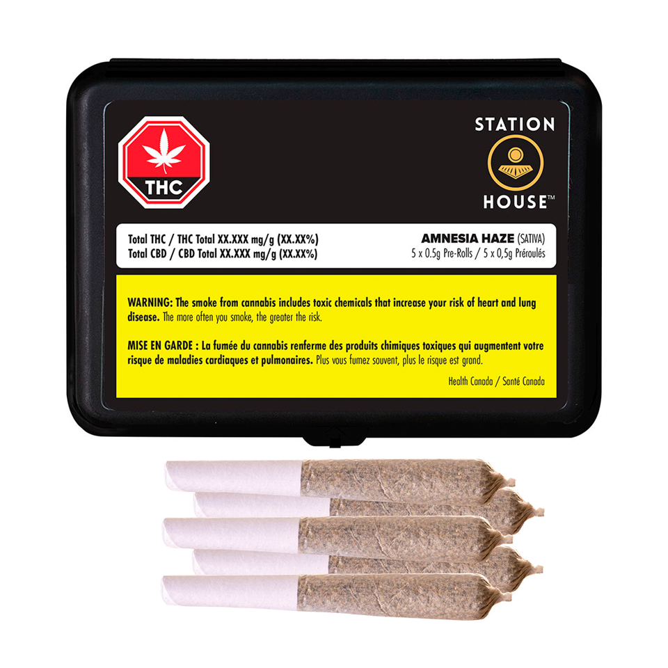 Classic Station House pre-rolls made from whole flower Amnesia Haze. A sativa with crisp, fresh aromas of pine and citrus. Machine rolled and packed just right for the perfect burn, every time. Precisely weighed and machine rolled for an ideal, even burn. Packed with a humidity device to extend freshness. Quality cannabis, everyday fares.