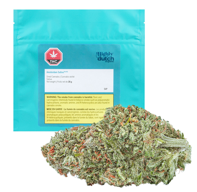 Highly Dutch's Amsterdam Sativa is a strain specific rotating variety of organic high potency sativa flower, packing sweet floral flavours with punchy aromas to complement any occasion. Organically grown, Highly Dutch selects quality flowers that deliver a consistent potency in every batch.