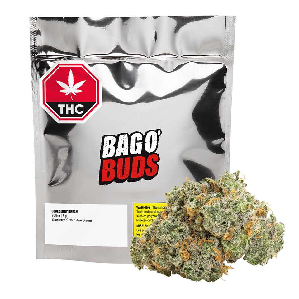 Big Bag o' Buds brings you Blueberry Dream, a potent sativa strain with high THC that’s as bold as it is smooth. A cross of Blueberry Kush x Blue Dream, this strain delivers sweet, floral and berry aromas.
