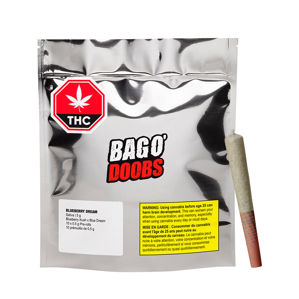 Blueberry Dream delivers 10 x 0.5g cone pre-rolls, rolled in hemp paper for a smooth, pure taste. This potent sativa has bold sweet, floral and berry aromas from limonene, terpineol and caryophyllene.