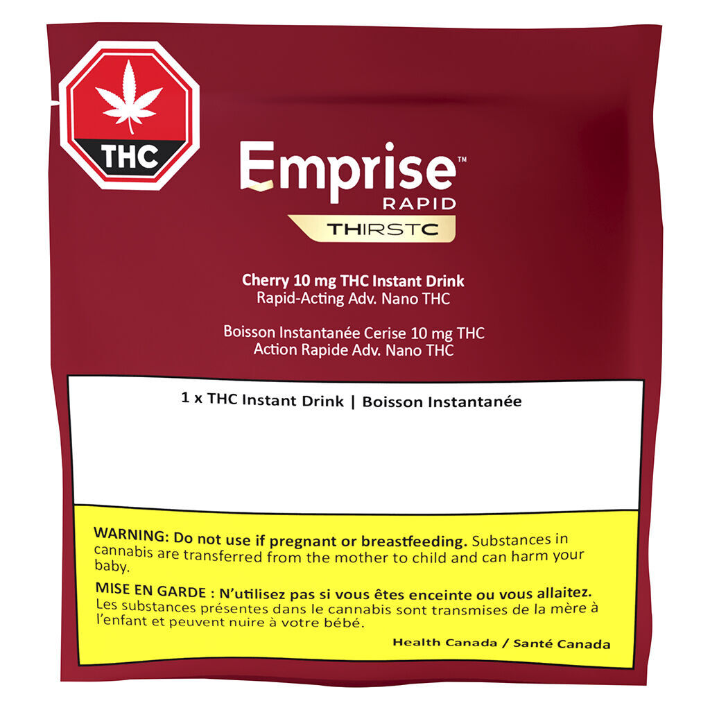 Emprise Rapid THirstC Cherry 10mg THC Instant Drink is ready when you are, add to 250ml of water and consume. Each sachet contains 10mg of Advanced Nano THC Emulsion that has a rapid onset in as little as 10-15 minutes.