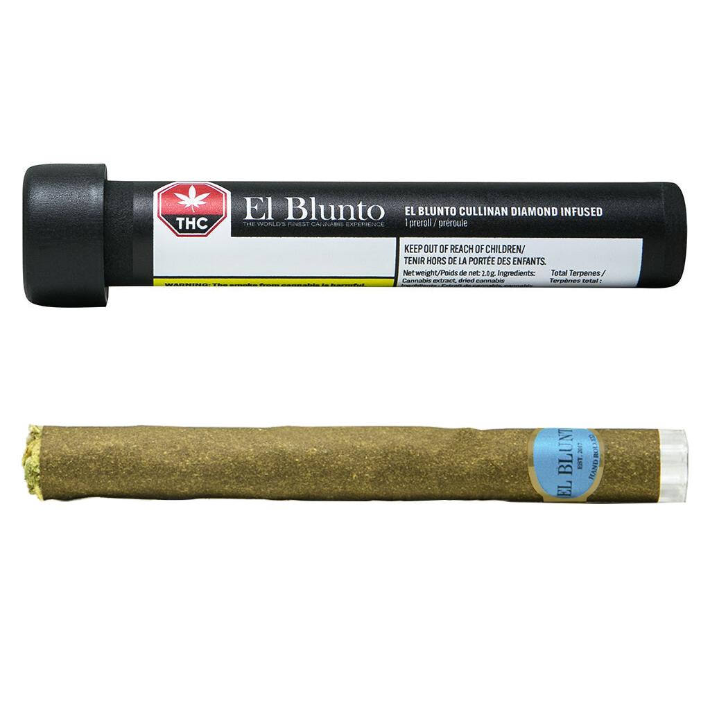 This El Blunto is infused with premium cannabis diamonds. Just like its namesake, the largest rough diamond ever discovered, El Blunto’s Cullinan is big, all-natural and its best parts are below the surface. Featuring berry and citrus aromas, it's infused with cannabis diamonds that are certain to become absolutely everyone’s best friend. Contains full flower buds infused with premium cannabis diamonds, broken down by hand (never ground), hand rolled in tobacco-free all-natural hemp wraps, finished with custom glass filter tips and encased in a resealable jar.