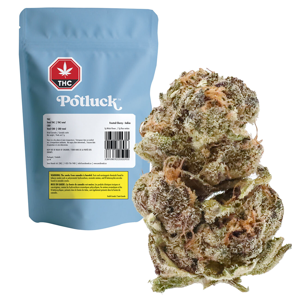 Bring on the flavour with Frosted Cherry, a fruity indica leaning strain from Potluck’s Fruit Collection. Bursting with a sweet skunky aroma and a crisp, tart cherry taste, this cultivar is a fresh pick for flavour hunters who like their flower frosty and potent.