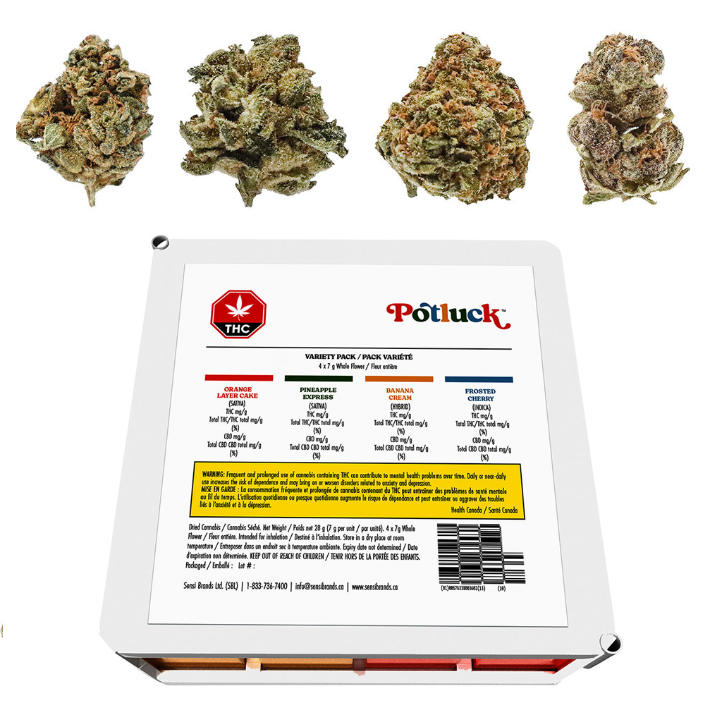 Dive into a potluck of punchy flavours with our four strain Fruit Collection Ounce. Each cultivar is chosen for big satisfying taste. Pineapple Express brings sweet and tangy tropical flavours. Orange Layer Cake serves bright citrus with a smooth, creamy finish. Frosted Cherry layers juicy fruit with a hint of cool mint. Banana Cream delivers rich, custardy banana. Skip the bland. Elevate your flower game with the Fruit Collection Variety.