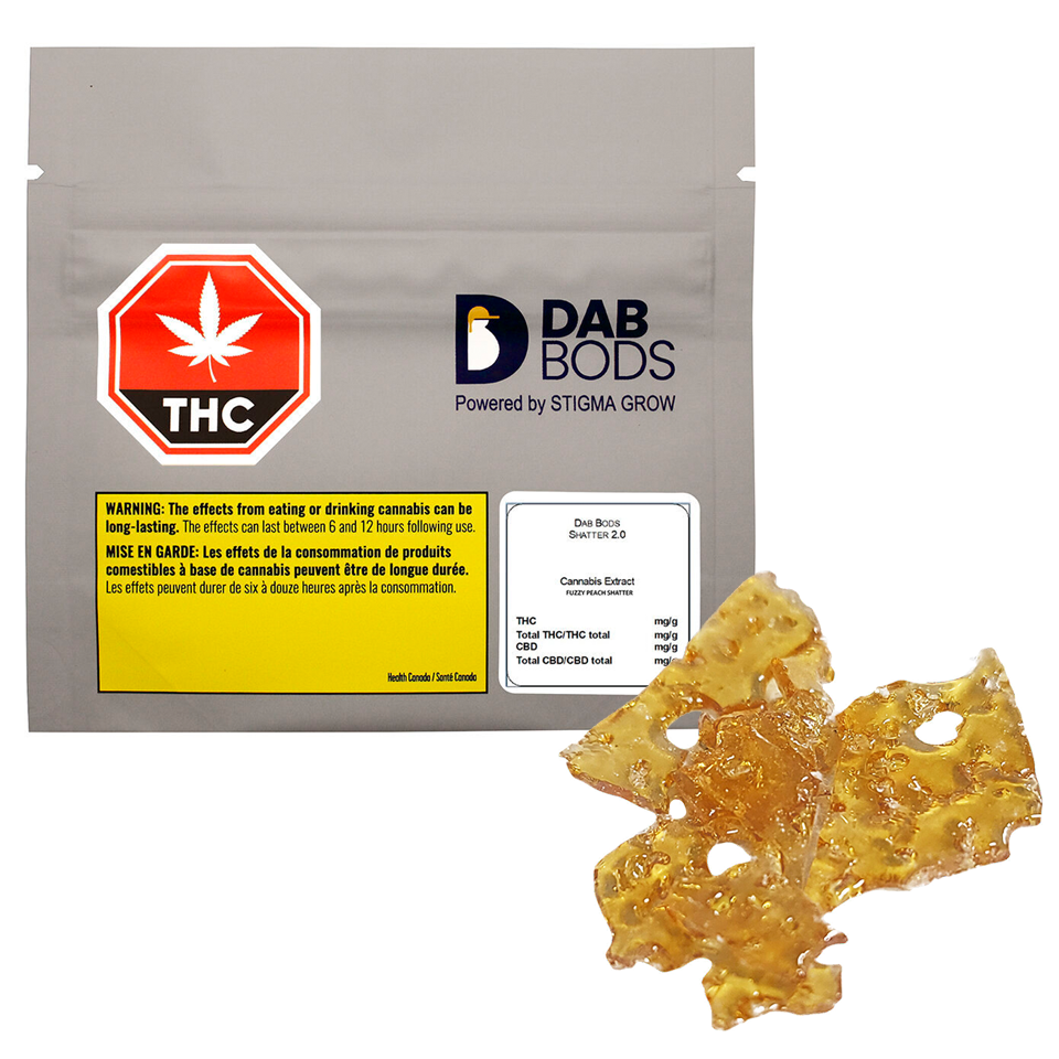 Dab Bods would like to introduce our next generation of Shatter, Fuzzy Peach Shatter 2.0. We will never stop trying to improve our products and our shatter is no exception. With the addition of terpenes, our 2.0 shatter gives a more malleable texture with a heightened taste profile. Fuzzy Peach Shatter 2.0 is sure to be first picked in the Shatter market. Featuring flavours of sweet peaches from the strain Peach Fuzz, this hybrid strain made by crossing TK91, Peach 02, and Wilson is here to make a summer to remember.
