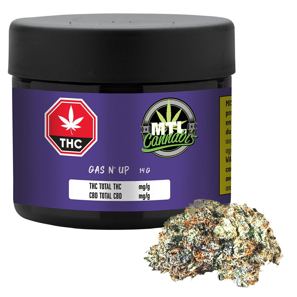 Gas n’ Up is an indica cross of Venom OG x Humboldt OG. The bud is a smoky emerald with hints of sage green and speckled with rusty red hairs, topped with a heavy dusting of trichome crystals. This distinct flavour is marked by a complex blend of spicy diesel, black pepper and earthy woodiness.