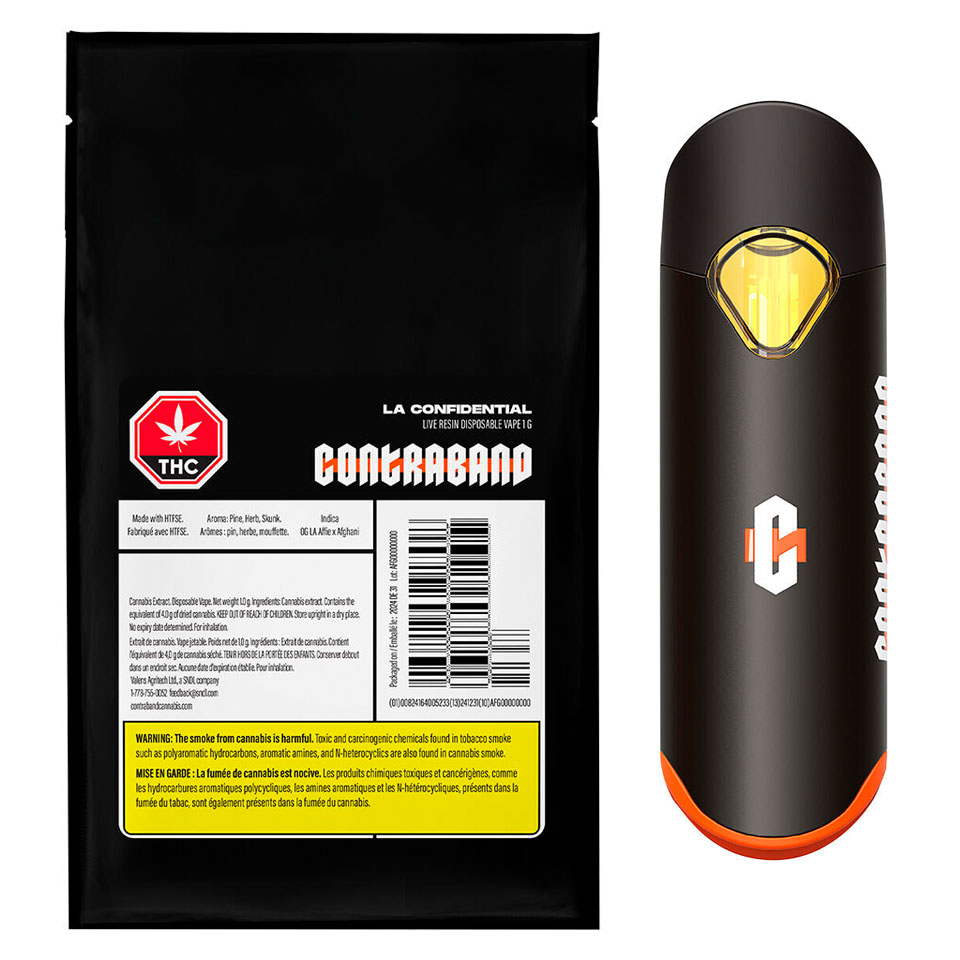A popular legacy strain grown for those that appreciate the old school, transformed into a premium live resin for the new school. This premium indica-dominant strain is hydrocarbon extracted and enhanced with High Terpene Full-Spectrum Extract (HTFSE) for an unparalleled experience. This ultimately portable, disposable vape has notes of pine, herbs, and skunk. Contraband's disposable hardware is designed to perform as impressively as it looks. Incorporating advanced features such as a vent tube-free design for optimized flavour and rechargeable USB-C, you can expect a consistent silky and smooth high-potency vape.