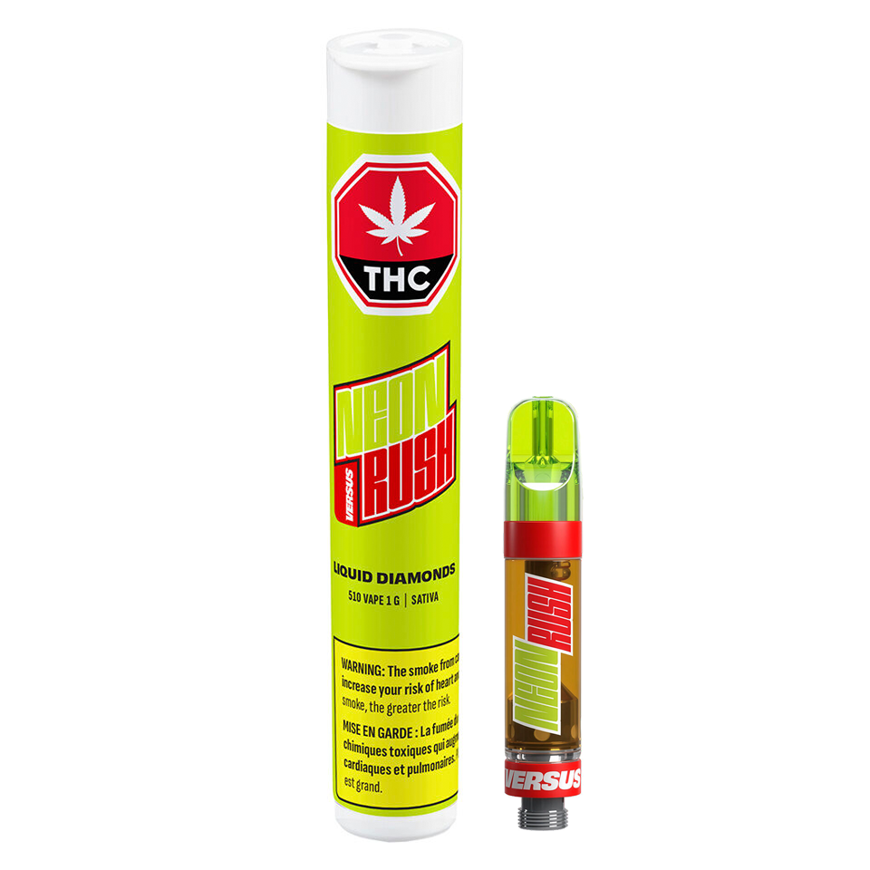 Versus Neon Rush Vape — ascending you to the peak of tropical citrus flavours, inspired by the beloved Versus Neon Rush beverage. This 1g vape cart features ethanol extracted, 5x filtered distillate — resulting in a smooth, experience with every pull. An expert formulation paired with eye-catching hardware — a stainless steel centre post and ceramic heating element, ensures a clean, true-to-form experience.