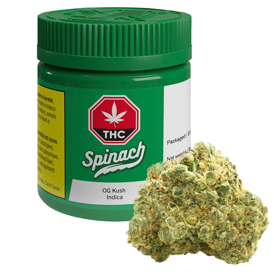 For the first time, the remake is going to be better than the original. Spinach® OG Kush is our new take on a classic strain making for a super flavourful and potent cultivar. A cross between GMO #12 x SFV OG, get earthy, piney, and citrusy flavours and aromas pumped up from terps like myrcene, limonene, and caryophyllene. This cross doesn’t only make for a flavourful strain, it pumps up the potency to new levels and makes it the newest ‘OG’ experience you won’t want to miss.