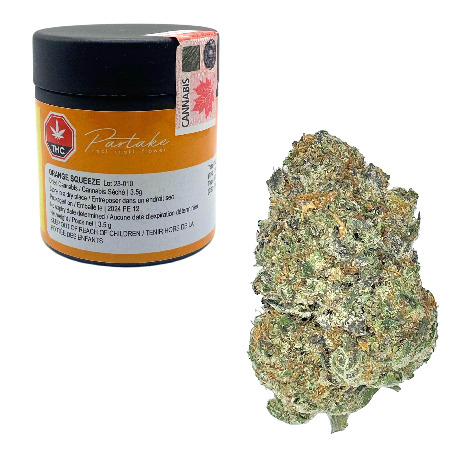 Craft quality, single strain whole bud in mylar bags. Partake’s Orange Squeeze is a cross of Mimosa and Orange Tree. The first note is velvety chocolate followed by a burst of citrus. This high THC blunt will give you everything you’re looking for in a quality craft grown product. Hand trimmed, hand watered, non-irradiated whole flower bud.