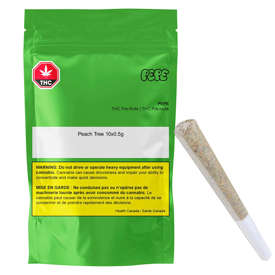 Pepe's Peach Tree is flavourful with smooth smokeability. This sativa leaning flower is born out of a double Peach Ozz cross. Expect aromas evocative of sweet peaches and hints of gas and lime. Packed with a humidity pack to ensure every pre-roll is perfectly preserved. All whole bud input, no shake or trim used.