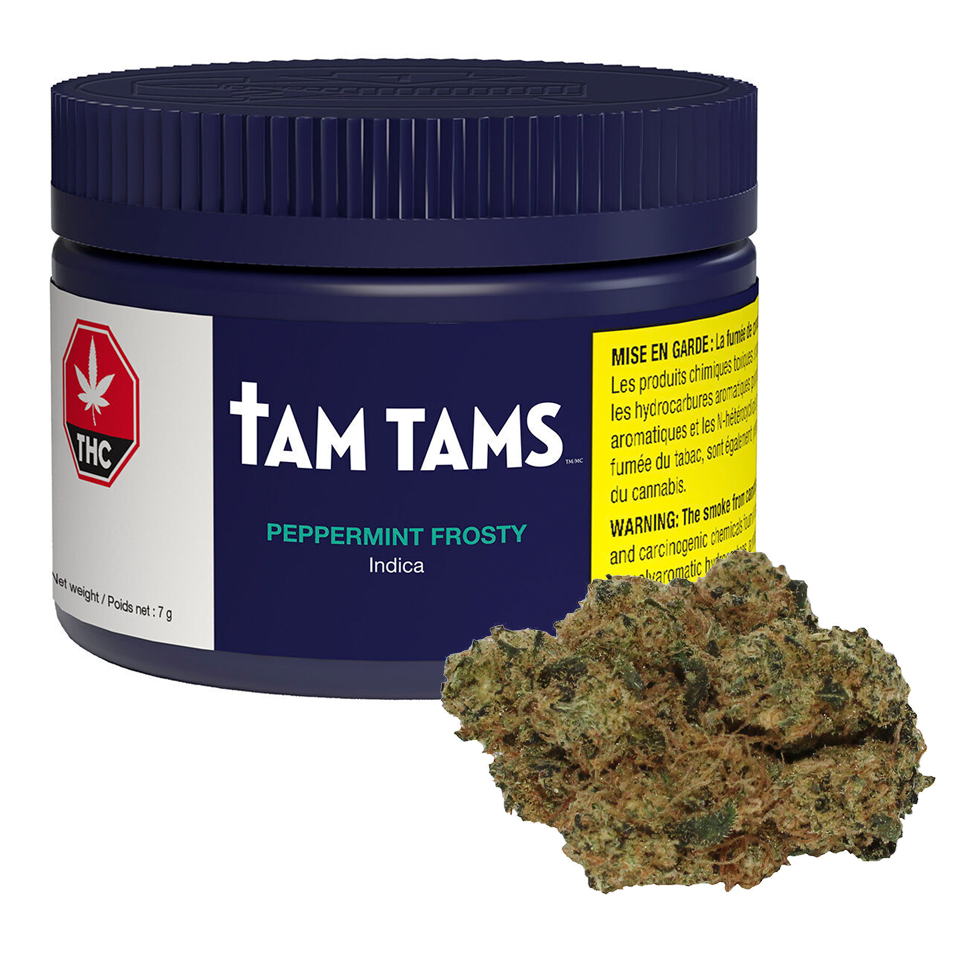 Peppermint Frosty is the digestif and perfect treat. With a minty flavour that lingers on the palate and finishes with the smoothness of malt and a touch of sweet. This indica offers a balance of herbaceous with candy notes, coming from Tam Tams’ in-house genetic vault.