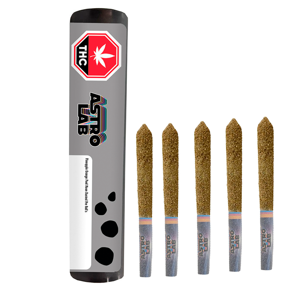 Blast off with Astrolab’s Pineapple Orange Peel Moon Dusted Infused Pre-rolls, a tropical explosion of flavour and potency. This pack of pre-rolls is crafted with premium live rosin and a coating of kief, delivering a cosmic hit that’s smooth, potent, and full of bright, zesty flavour. The flavour profile is an exhilarating mix of tropical and citrus, with juicy pineapple and tangy orange peel taking centre stage. It’s a fresh, flavourful smoke that transports you to a sun-soaked paradise with every puff. With very high THC, these pre-rolls pack potency, sending your experience into another orbit. P.O.P offers a next-level smoke that combines tropical flair with premium quality for a truly out-of-this-world experience.