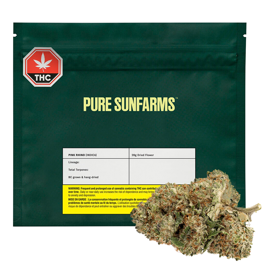 Pink Rhino is a cross of the popular Pink Kush and old school legend White Rhino. Our growers have brought together two iconic parents to deliver a new candy-like kush that’s got it all: potency, dense sticky buds, sweet aromas of sugary honey and classic kush notes of earth and gas from dominant terpenes linalool, myrcene, limonene. The plant produces cake-y light green buds that are naturally super tight and thickly coated in sugar from top to bottom.