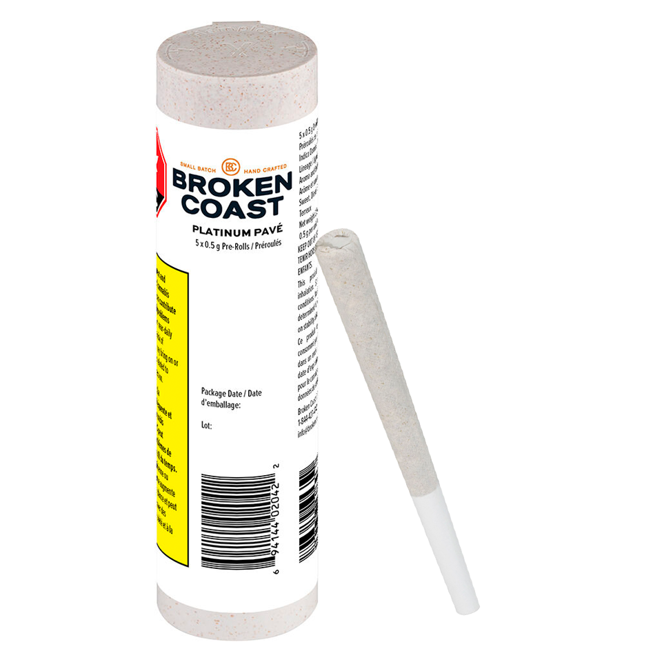 Platinum Pavé is now available in pre-rolled cones. This indica masterpiece is a cross of Spritzer x Pavé. It was phenohunted from more than 500 seeds from Compound Genetics for an exotic expression that drips with trichomes, enhanced and preserved using cold curing. Taste the sweet, diesel and earthy flavours. Grown in small batches, strain specific rooms, hang dried, carefully hand trimmed, slowly cold cured, never irradiated, inspected for purity, milled to perfection, rolled into OG-style cones and then carefully hand packaged.