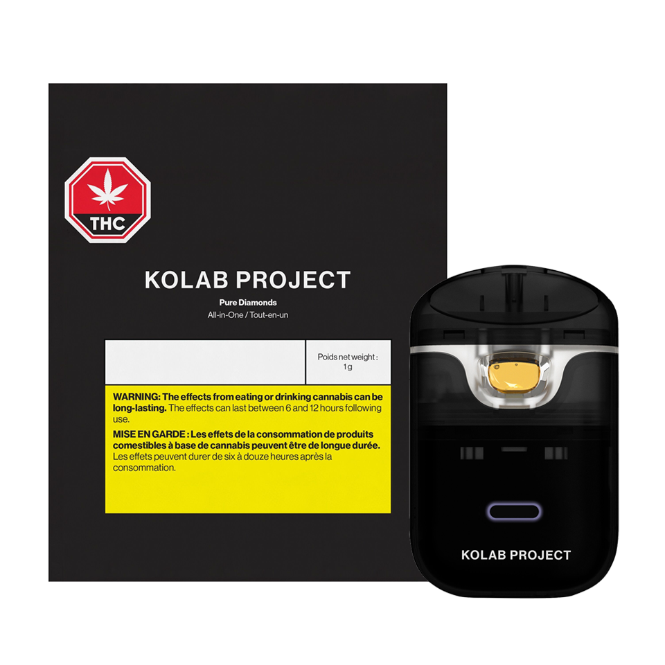 Kolab Project's proprietary AIO vape combines state-of-the-art technology with novel and convenient design. Kolab's device is rechargeable, uses a blue ceramic coil, and offers dual-heat settings to guarantee a carefully crafted experience. Our Pure Diamonds AIO offers diamonds in their simplest form, unflavoured and clean. Embrace the unexpected with Kolab Project.