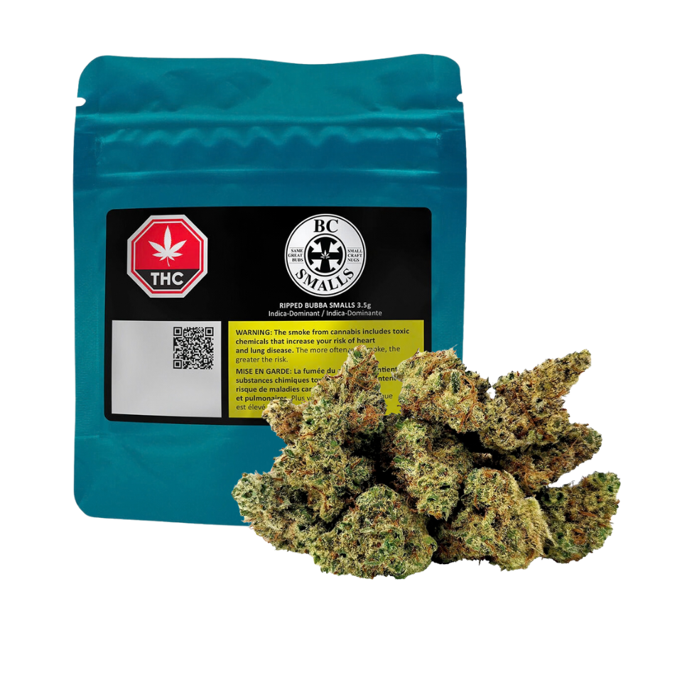 Ripped Bubba is an indica dominant strain merging the genetics of Pre-98 Bubba Kush and Jack the Ripper. The buds are dense with lime and dark green hues highlighted by amber pistils and a thick coating of frosty trichomes. The aroma is a complex blend of passionfruit, sweetness, spice and skunk, which carries through into the flavour. This offering stands out for its distinctive combination of aroma, flavour and visual appeal.