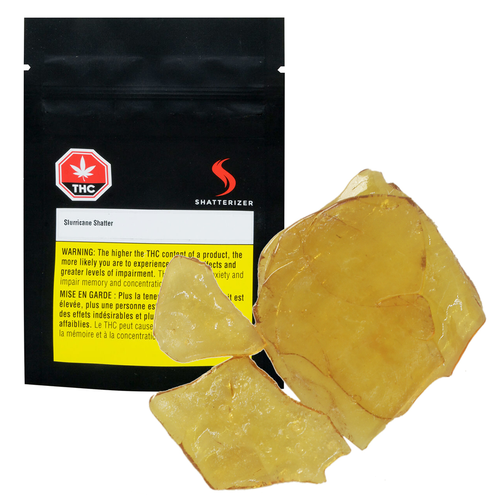 Shatterizer’s Slurricane Shatter comes from Purple Punch and Dosido lines. It is a berry fruit forward Indica shatter, extracted from creamy and rich, violet tinted trichomes. The line-up of terpenes will dance a dosido in your mouth, with a punch of purple grape that’s a hit! Our Shatterizer Shatter is a Slurricane of Perfect Clouds!