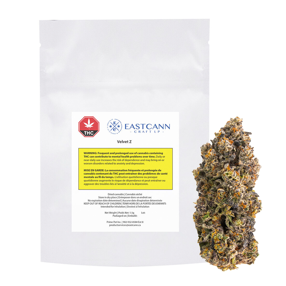 EastCann Velvet Z is a high THC indica leaning hybrid of Red Velvet x Rntz. Velvet Z exhibits a complex blend. Combining the sweet and fruity essence of Rntz with the decadent, creamy and dessert like flavours of Red Velvet, with subtle hints of fuel. Velvet Z buds are dense with beautiful frosty trichomes.