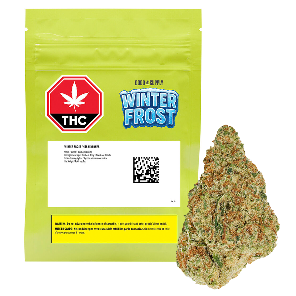 Brace yourself, Winter Frost is coming. This unique genetic is only available for a limited time and is rolling in with an avalanche of berry flavour. A Northern Berry x Powdered Donuts cross, this exceptionally icy indica-leaning hybrid features ripe berry with sweet and sour flavours. It has a terpene trio of limonene, caryophyllene and myrcene.