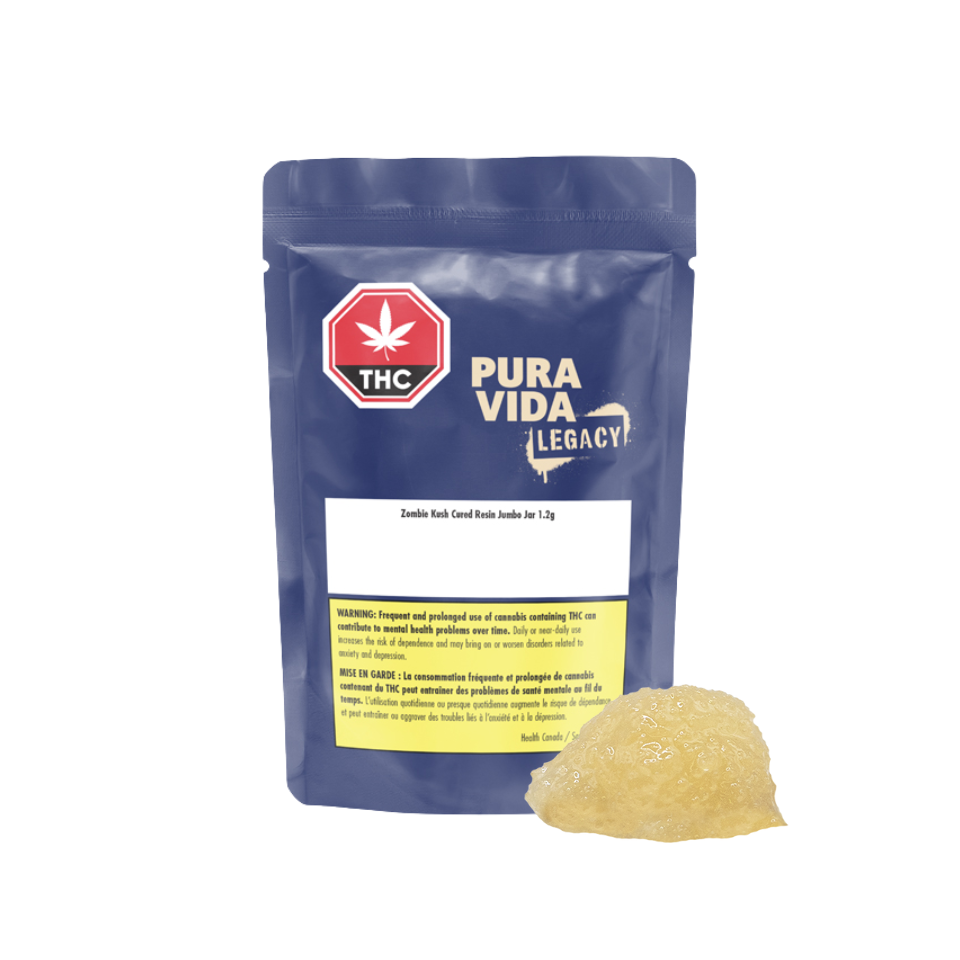 Introducing the Pura Vida Legacy Zombie Kush cured resin jumbo jar. Expertly cured resin made from whole dried bud to capture the most captivating flavours and intense aromas. We’re bringing you Zombie Kush, a cross of the Sideral and Bubba Kush strains with lavender and earthy aromas and a unique taste.